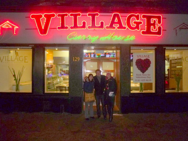I spotted our Sri Lankan Host showing his Computer-thingamybob to Mr Baig (the Proprietor) and a young Lady member of staff who must be Miss Baig, she is Kassif’s image. Mr Baig looked up, I realised they had to be looking at the Curry-Heute Website. Indeed they were. Mr Baig reminded me that I should have asked for my Kirahi to be served – Dry and Desi-style.  Why don’t they serve it that way by default?  Kassif joined the family for a Photo. I shall call her Miss Baig.  Miss Baig said – You have been everywhere!  She then asked why The Village was not My Favourite Curry House? I had to admit my allegiance to Yadgar and the Curry Houses of Bradford – where Chapattis are inclusive. However as her Family will testify, I ate at The Village for years before Yadgar was brought to my attention. I have eaten more Glasgow Curry on these premises by far, and therefore feel entitled to be critical.