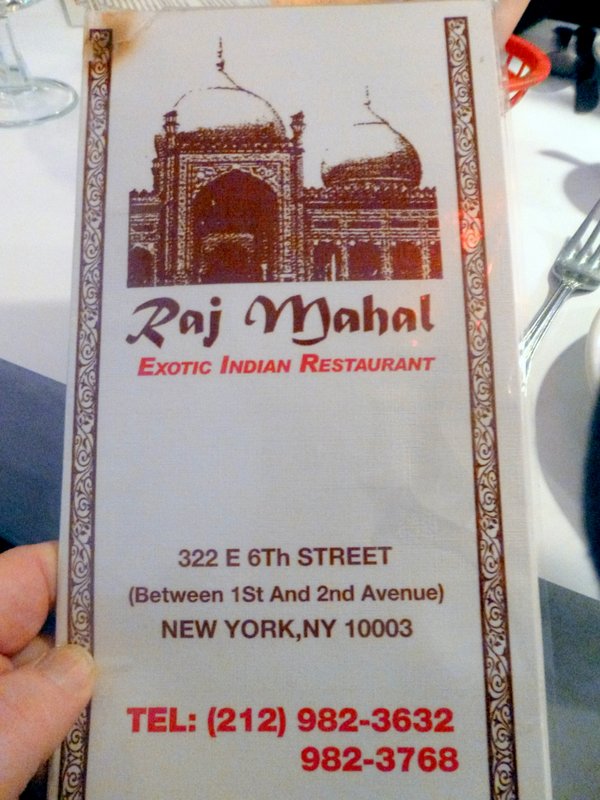 Raj Mahal, East 6th Street – Hector’s first Curry-Heute in the USA!