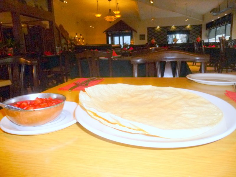 The first business of the day was to solve the identity problem. Andrew introduced himself formally. He will no longer be Mein Host from Sri Lanka. Andrew?, a popular name there apparently. Complimentary Poppadoms and Onion Chutney were summoned and delivered whilst our discourse continued. Today’s Order was already taken care of thanks to an entry on a popular Social Media Website. I had asked for the re-introduction of the lost Laal Lahori. This had been promised. A solitary Chapatti would be the Accompaniment. The clock said Dinner Time, the Body Clock was still confused. Having had my last Evening Meal at 02.00 GMT courtesy of United Airlines followed by Breakfast 06.00, it was surely time to eat, Lunch?