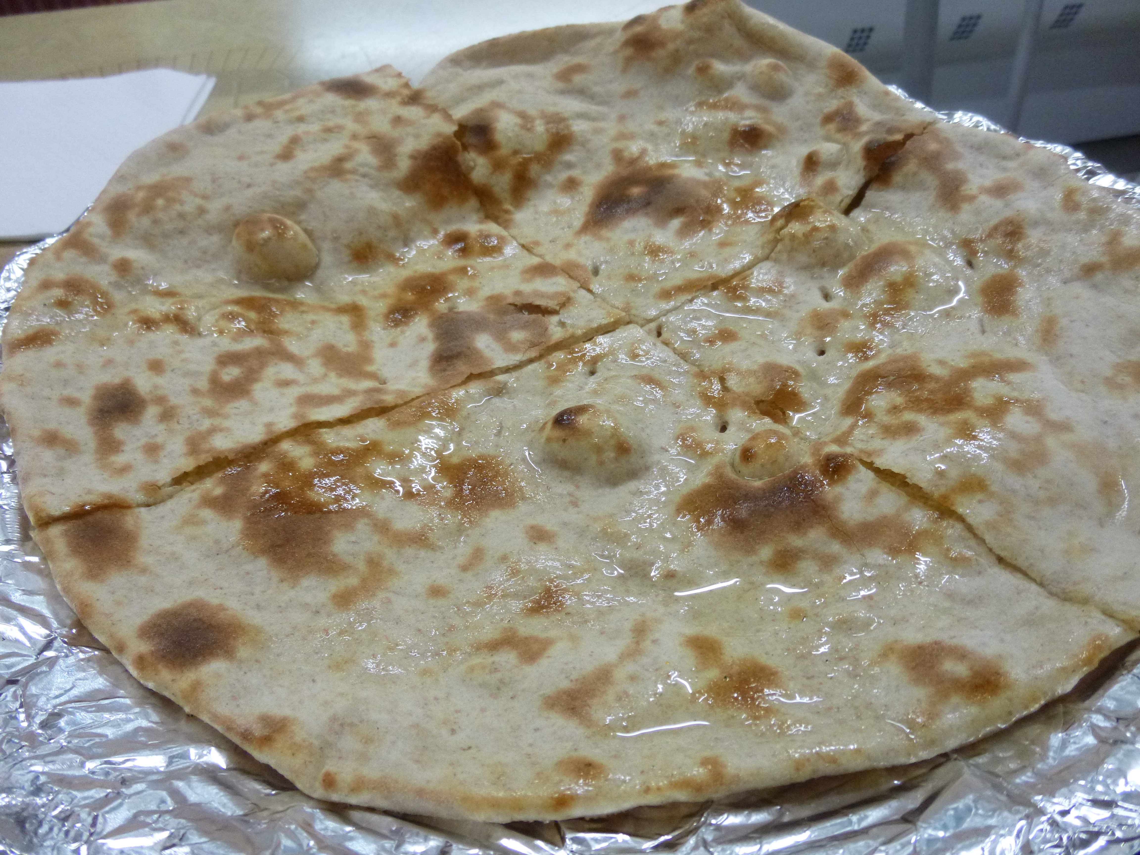 The Food came within the expected time period, a Bowl of Curry and a large Freshly made Chapatti served on foil. This would help retain the heat and keep it soft to the end, a good trick. The Curry was very much Curry Café, reminiscent of  Al Faisal in Manchester. There was only one significant Bone in the Serving, enough to make The Meal. The Masala was thicker than Shorba, what I have described as 1960s Glasgow Curry. The Lamb was well cooked, Tender, and the Kick was imminent. At first I felt more Seasoning would have improved the Experience, but the lingering Flavours made me change this view, this was an Above Average Curry, but in no way Outstanding.