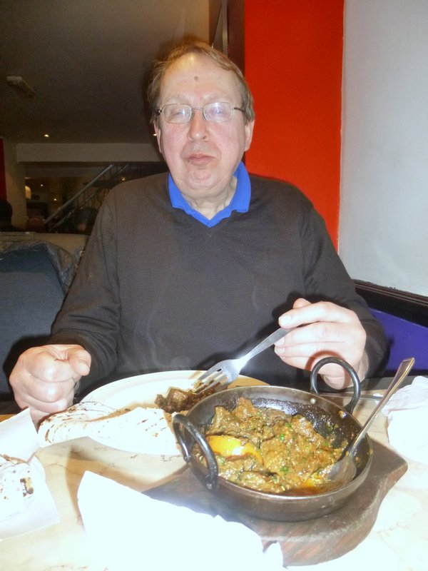 The Two Lamb Krahi Methi and Six Popadoms were brought by Mein Host himself. Two pieces of the Alien Vegetable were visible, for Decoration, no more. The Spice content in the Chops was significant, this was on a higher level still. The Masala was Bradford-style, enough to be present. Whilst the Herb content was visible, the Methi was not to the fore. Dr. Stan had to admit to Disappointment after The Big Build Up. Hector’s Palate was still recovering from the Lamb Chops. This was not The Best Curry Ever, but still Way Better than the Norm.