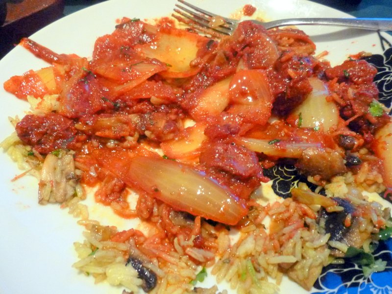 A few weeks ago at The Village, Marg felt she had to speak out, today it was Hector’s turn. When asked the customary question I had to answer honestly. I have a plate of Onions here, and why it it so Red? The Waiter told me it was from The Spices. I challenged this immediately – Spices do not colour Curry like this, only Food Dye does. I stated clearly – I am disappointed. He retreated.