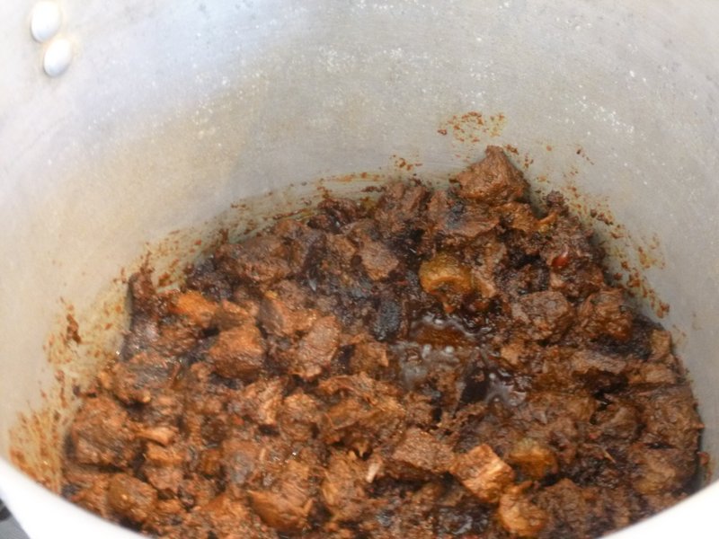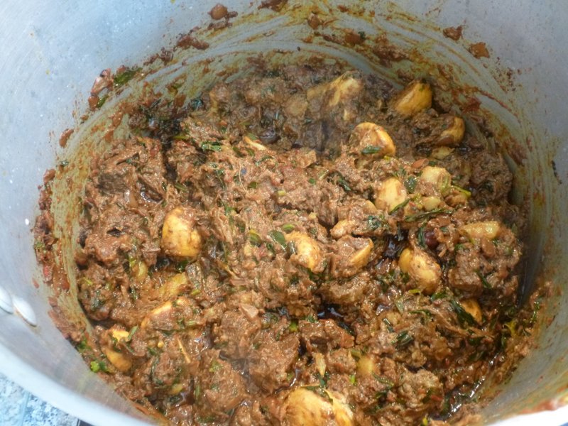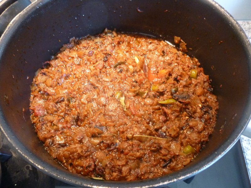 The Lamb was placed in one Pot along with Vegetable Oil, the Karela Pickle, Garam Masala and some Tamarind Resin that needed using. This was slow cooked for two hours to ensure the Mutton was suitably Tender. Appearing much like Lamb Stew for most of the two hours, when the Liquid did start to Reduce I ended up with something that was definitely Curry-like, I could have served this as was.