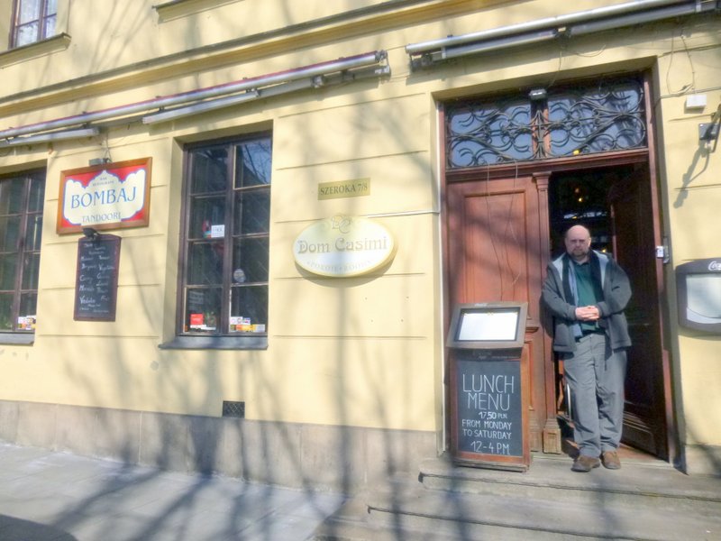 In the meantime there had to be Lunch. Walking up through Kazimierz, the Jewish Quarter, the sight of Restaurants with Hebrew Script planted one Food Type in my mind – Falafel! I tried three places, no luck. The fourth venue on the street turned out to be the Bombaj Tandoori (Krakow, ul. Szeroka 7-8), Falafel would wait, it was time for Curry-Heute! Marg had Coffee and Cake in her mind and so stayed at the previous venue.