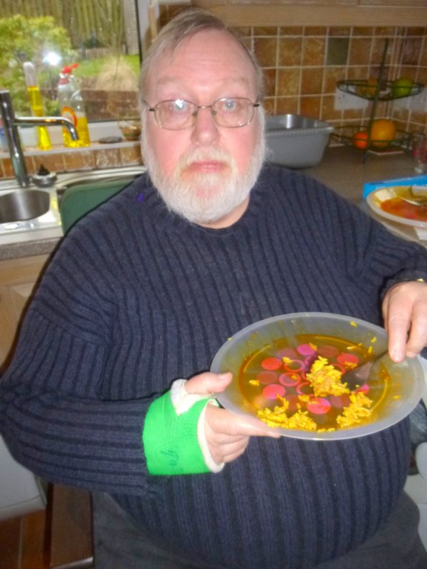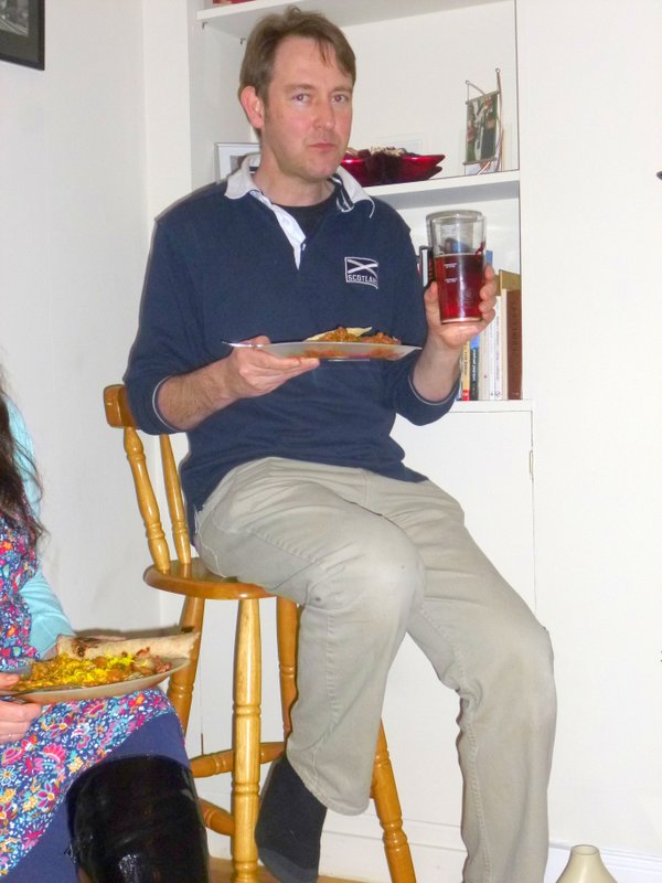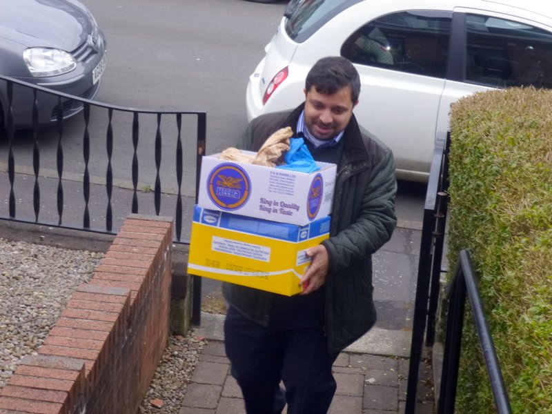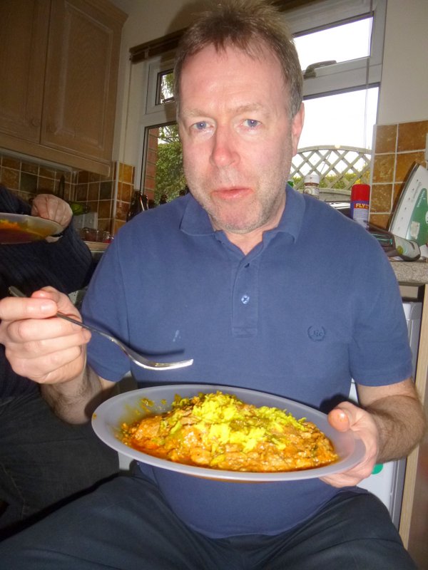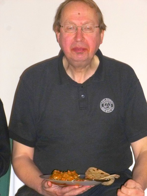 Shkoor arrived bearing Curry a few minutes after the arranged 17.30. We were eagerly anticipating the Curry, though by this time some were munching on Nibbles such was the voracity of The Appetite. Three Boxes in all.