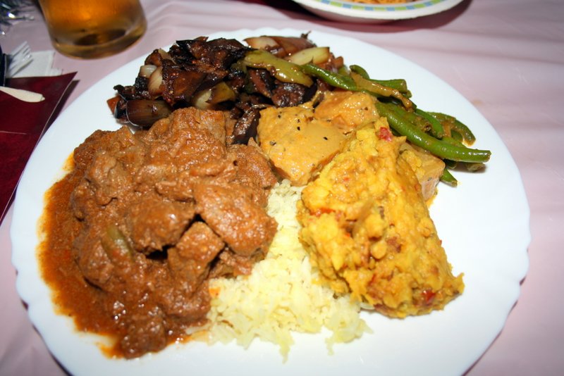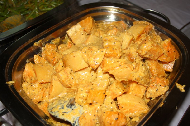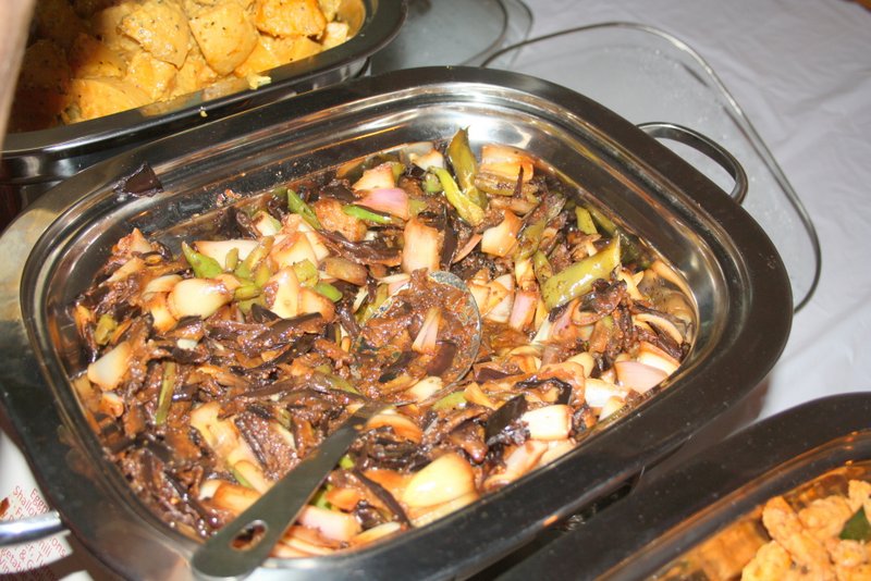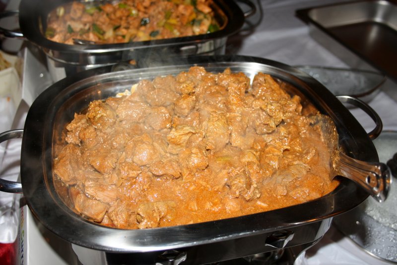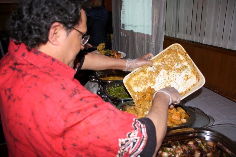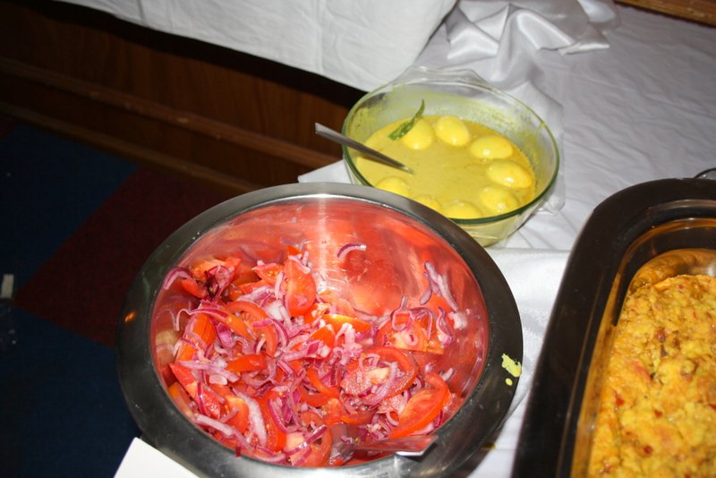 Lamb Curry, Devilled Chicken, Brindjal Moju, Dhal Curry, Tomato and Onion Salad, Tempered Beans, Butternut Squash Curry Rice and Fried Vegetable Noodles were in plentiful supply and were constantly topped up. Nobody would leave without an Elegant Sufficiency, indeed many went back for more.