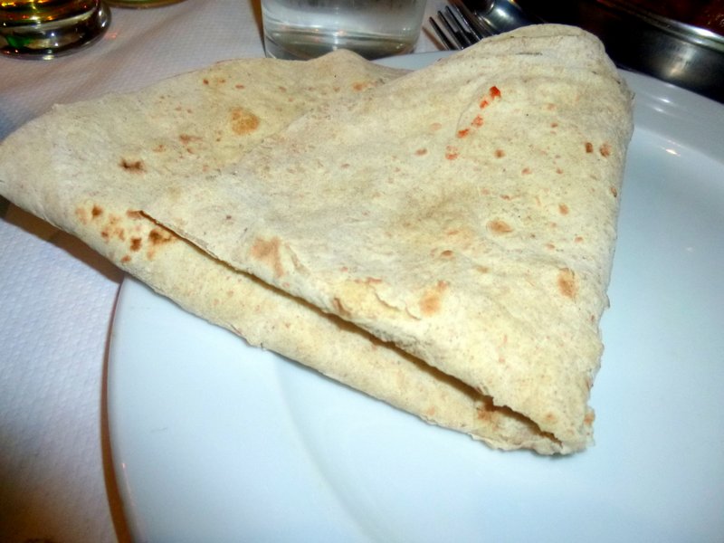 The Methi Gosht were also served in the standard dishes. There was now the task of setting out the Breads. The Nan was folded, else it would have occupied half of the table. The Chapatti was quartered leaving the Paratha to look resplendent. Peas were the stuffing in the Paratha rather than the usual Potato. This was an excellent accompaniment.