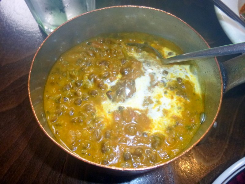 The Daal Makhni was served in the copper handled pot I have encountered in Europe. A Tapas portion is more than adequate. Hector is not turning Veggie but finds this to be an excellent Side, a new distraction from the norm. One feels noble eating Lentils, a realisation that this could well be the most authentic ingredient in the Orient, but this is Glasgow. We hae Meat!