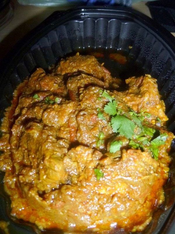 I immediately counted the Meat, eight pieces of Lamb, it looked much less. Within acceptable parameters? Maybe not. When scooped on to a half share of the Rice the portion still looked decidedly small. This would not be a feast. When once considers the quantity of Pakora alone one receives in a Glasgow Tea-Time Special Takeaway, never mind the volume of Curry to follow, this was simply nonsense. Never mind, it might still be an outstanding Curry, after-all they were up for an Award.
