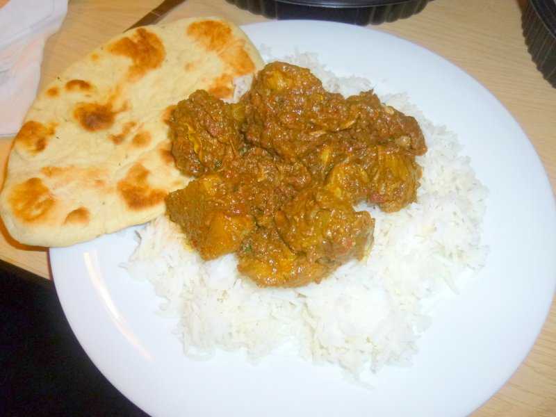 Hector has absolutely nothing to report on the Taste Front. Three Green Cardamoms made an appearance on the side of the plate, to no effect. The Nan was decidedly Salty, just as well, it was the only part of the meal which had any strong Flavour. It was Curry, I love Curry. I have never had one, I don’t know, but I imagine a Takeaway from Asda would on a par with this.