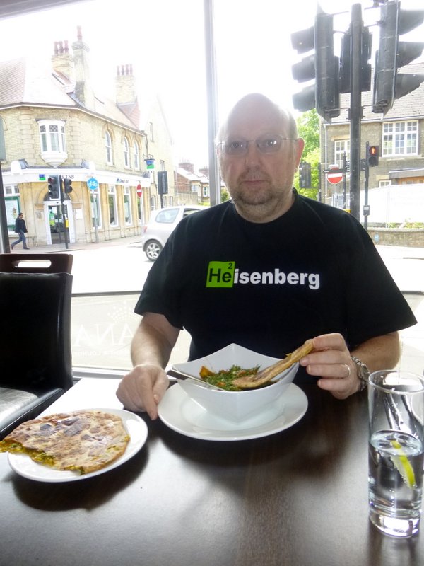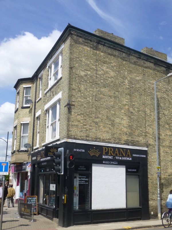 Prana (97 Mill Road Cambridge, Cambridgeshire, CB1 2AW) was my third choice of Curry House this lunchtime. Having watched Marg eat Breakfast in a Posh French Restaurant sufficient time had passed to permit a visit to the Taj Tandoori (Cherry Hinton Rd.) near the Cambridge Travelodge. It was not open at noon as an unreliable source suggested. There was nothing for it but to walk to Mill Rd, where there is a cluster of outlets. Golden Curry was open, but then we were confronted by a group of Chaps painting and decorating. They would be open at six I was told. Too late.