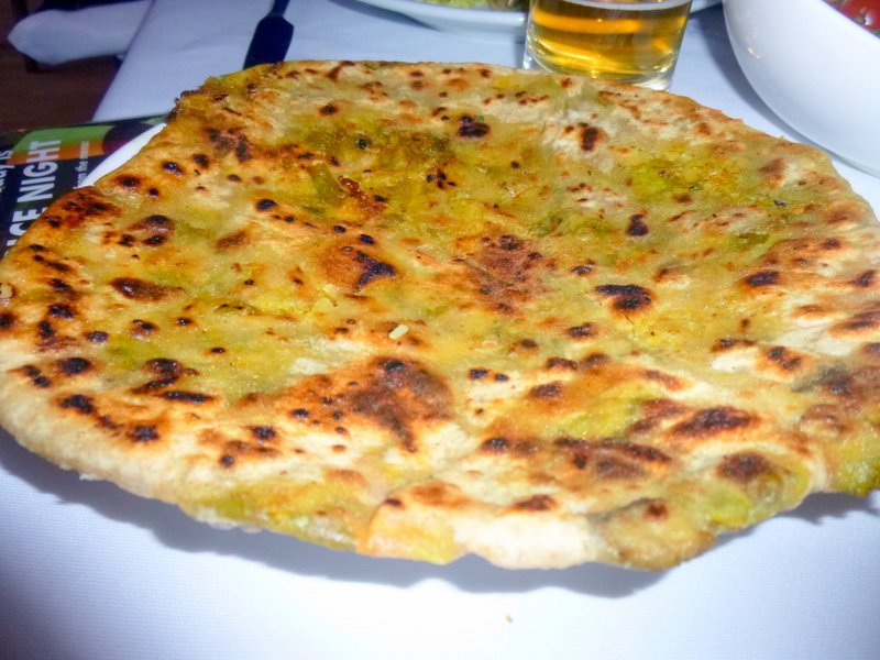 Twelve decent sized pieces of Lamb were shrouded in the desired Dry-ish-Thick Masala. The Lamb was a bit on the Chewy side but not excessively so. With a bit more Seasoning and even more Methi this could have reached the level of Outstanding. Hector is spoiled by his Favourite venues who cook to the Hector Palate. The Stuffed Paratha was not Huge and was manageable. It is good to finish one on occasion, an impossible task in most Glasgow Restaurants. The Herb content of the Paratha combined with the Minimal Masala made for very good eating. I can have no complaints whatsoever, this was a very good Curry.