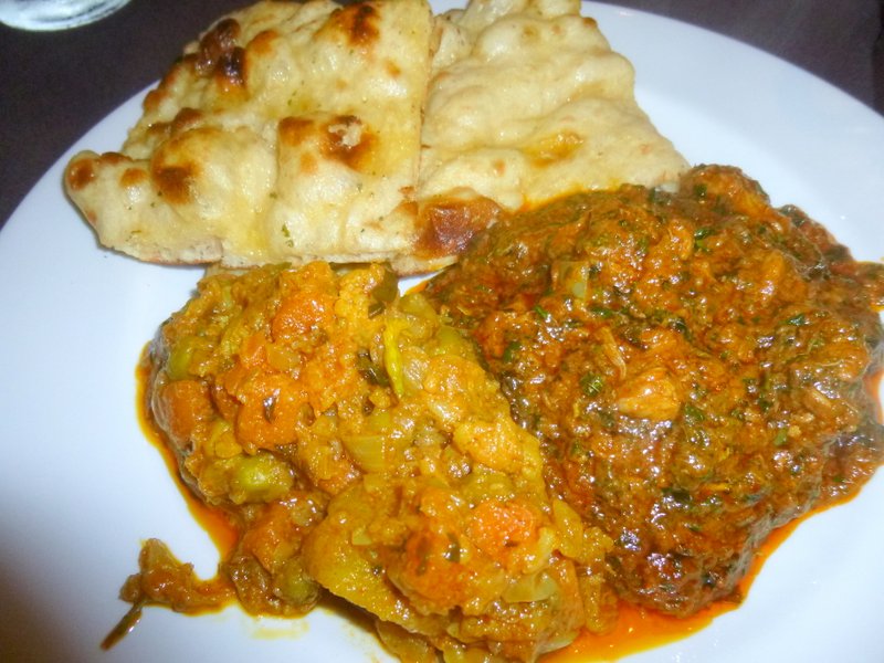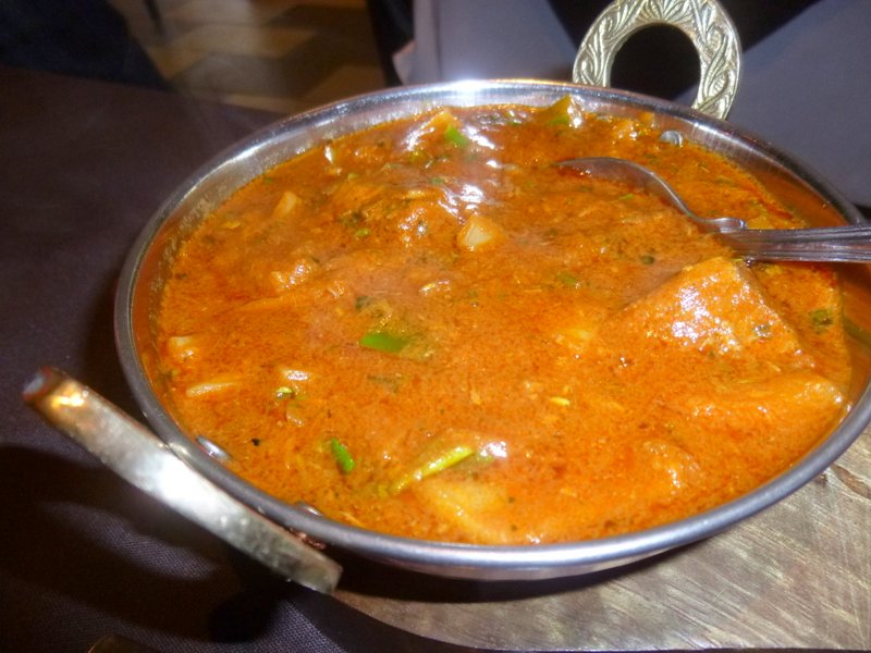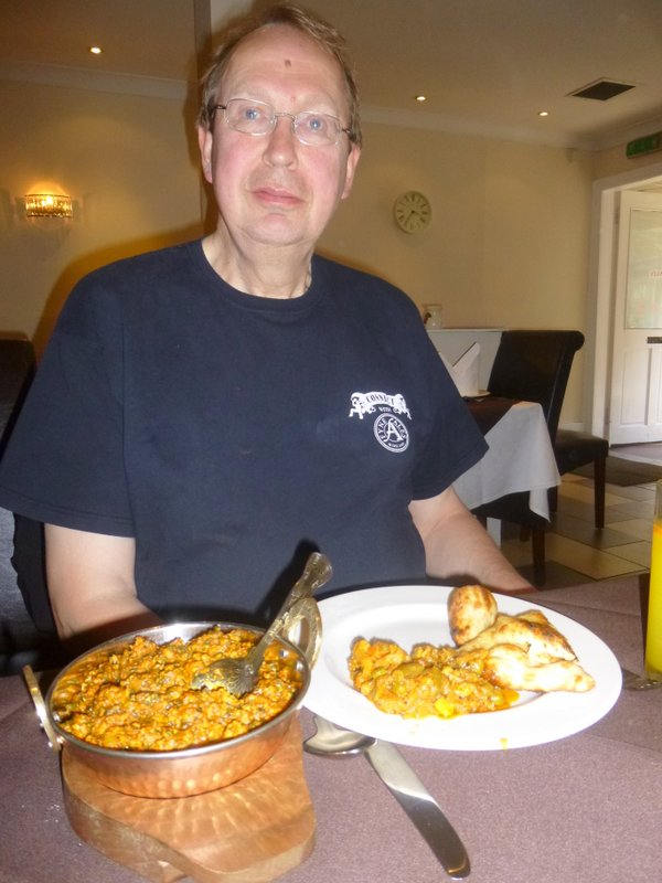 The Waiter was the same Chap who had served us last September in the previous incarnation. Poppadoms were brought along with Onion Chutney and a Dip. He suggested The Buffet, I insisted on The Menu. The Poppadoms would be inclusive – he stated. But aren’t they anyway? – I asked. Dr. Stan still considered The Buffet. In the end we had all found something to our liking and so were ready to order. The Methi Gosht would be Hector’s choice with Chapattis (£1.50). A Side of Mixed Indian Vegetable Curry.