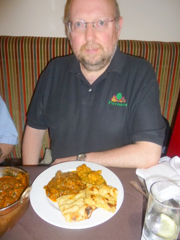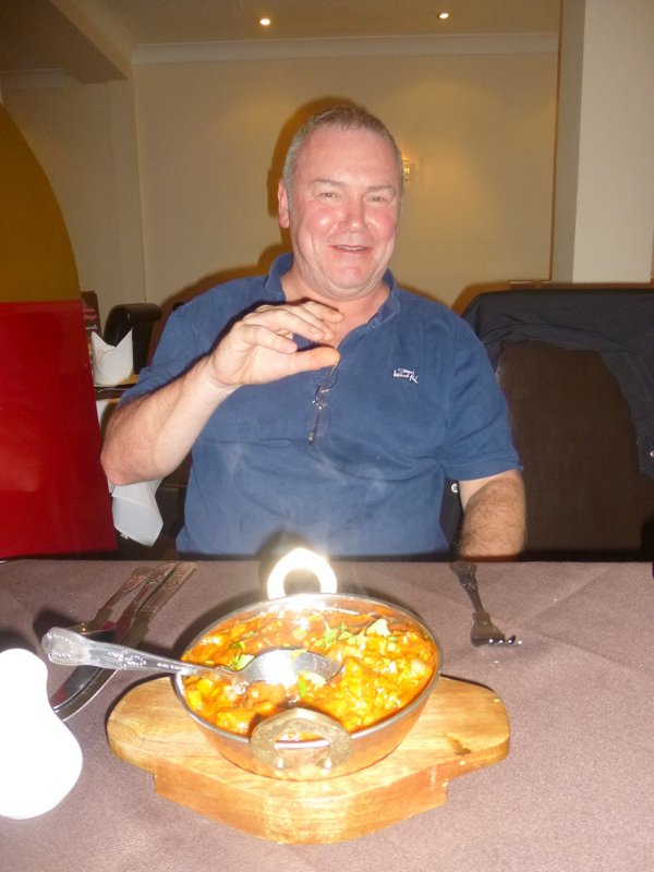 We were invited to visit the Desserts. We declined. We eat Curry. In the end Dr. Rick went to investigate, he returned with Profiteroles. Doris then offered us a Drink, On The House. Steve and Hector took Brandy, Dr. Stan – Tea, and Dr. Rick – Coffee. Much appreciated.
