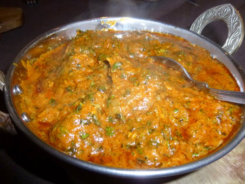 I had asked for extra Methi, perhaps this had thickened the Masala. At first I thought the Seasoning was Perfect but it appeared to vary as I ate. The Lamb was Superb, cooked to Perfection. Again this was a Very Good Curry, very enjoyable, but no Wow.