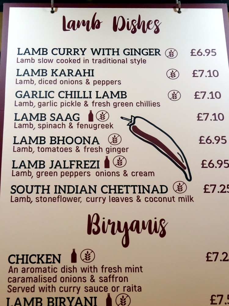 The charming young lady serving accepted that I would not be ordering from the Menu. She summoned Mein Host who was sitting at the window with his laptop. A Lamb Methi Bhuna Dry, no Capsicum was agreed upon.