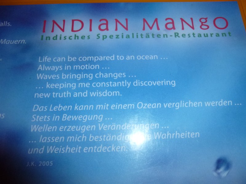 Batra was keen to point out his contribution in what makes the Chettinad Dishes stand out. Proud of his creations, he brought out the photos of his previous places of employment. I never did establish what brought him to Deutschland. He was also keen to mention his Brother who has cooked for Tony Blair. Hopefully Batra will stay at Mango for the foreseeable. Anzina has promised to be still working at Indian Mango when I return in October. We shall see.