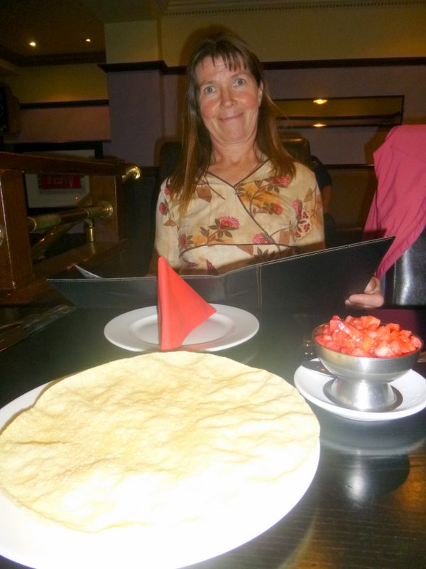 Ram greeted us on entry and showed us to what has become our Stammtisch. Four other Chaps sat opposite keenly awaiting their order. The Complementary Poppadoms and Onion Chutney were brought in a flash, Marg ordered the Drinks. After two week s in Tunisia, she has become a fan of Sparkling Water.