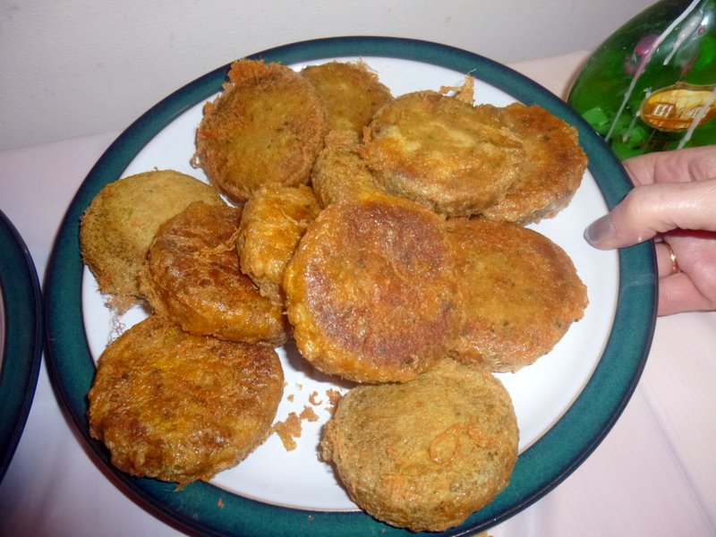 The only possible vegetable option could be Potato Patties but the colour is too dark for it to be anything but meat.
