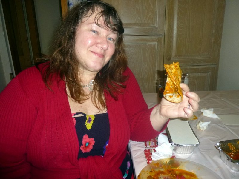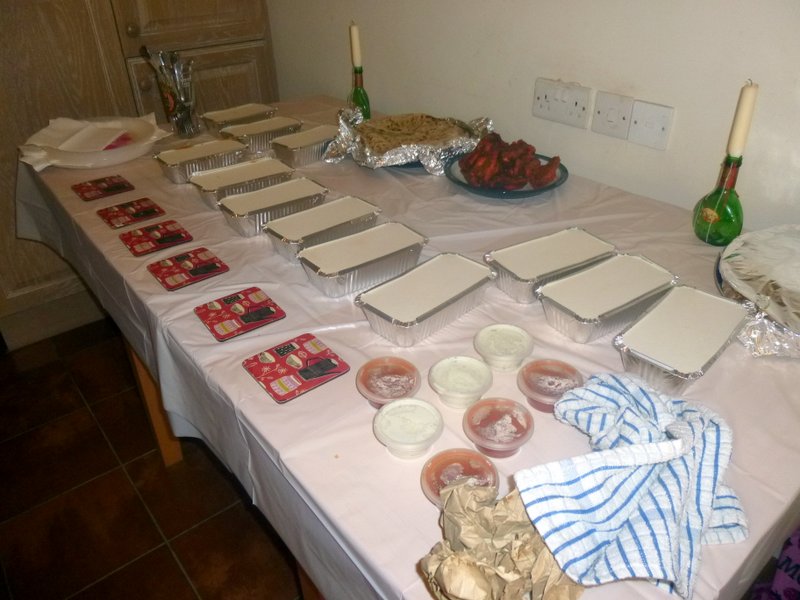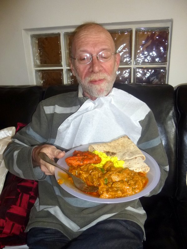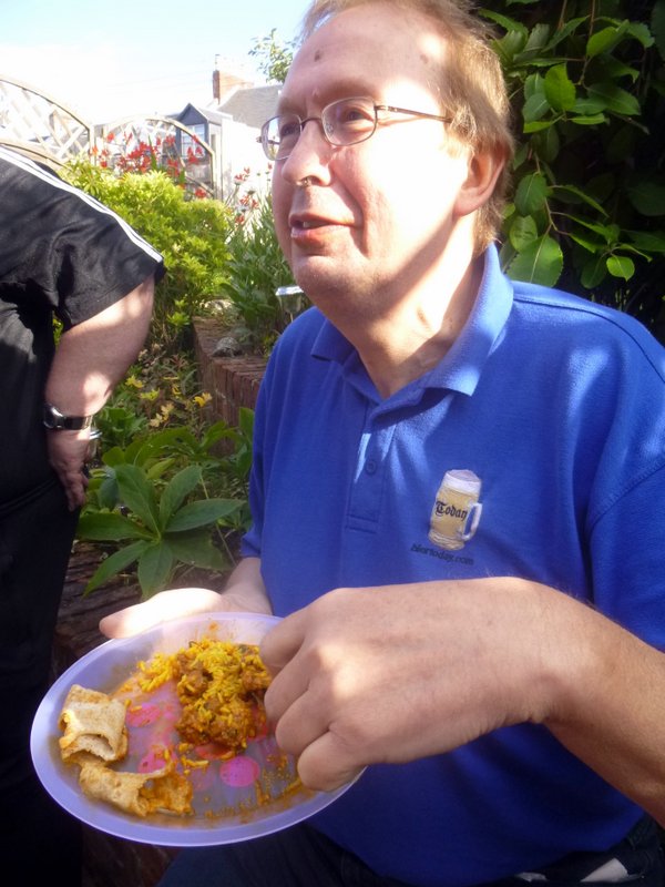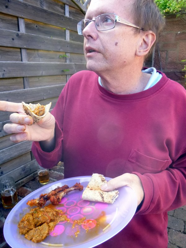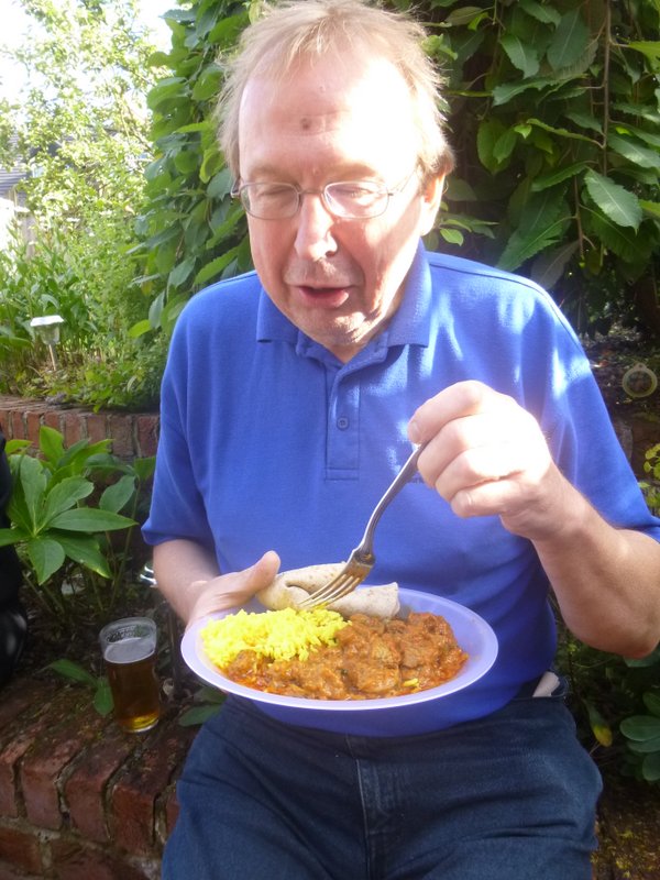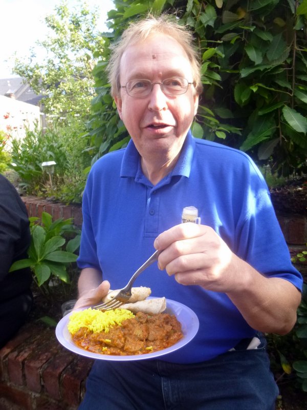 Yvonne had prepared the Rice and so the portions of Goshat Karahi were laid out with the accompanying Chapattis. Chicken Tikka on-the-bone, was also provided, brought hot, whilst Samosas and who-knows-what Vegetable Patties were placed in the oven. That these Starters were brought cold was a good idea. Everyone ate their Curry without distraction. Those with room afterwards were sated.