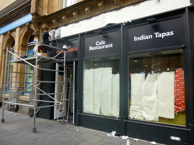 Around the corner, on Trongate, I spotted Shop-Fitters putting up the signs for another branch of Charcoals. Success breeds Success.