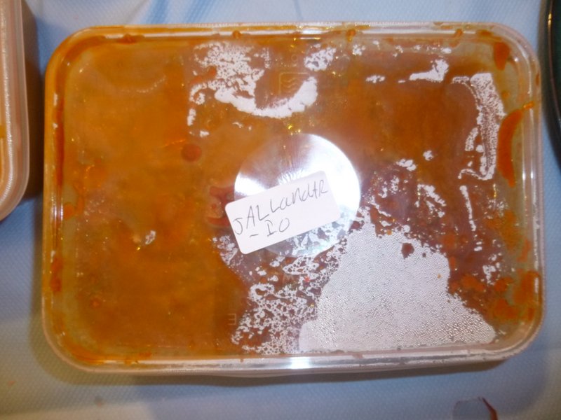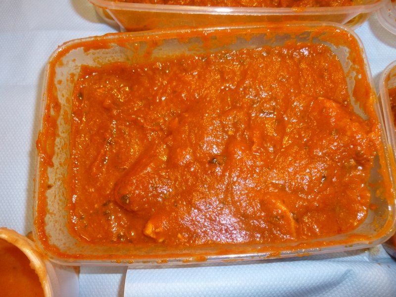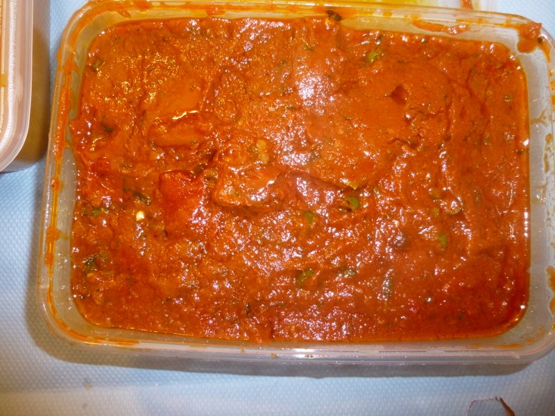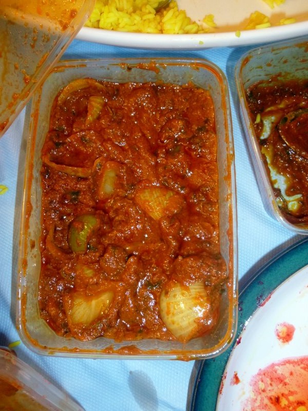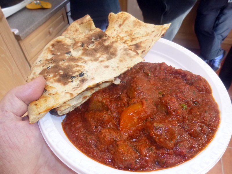 The Chef’s Curry was spotted but on opening the container it was Chicken, no thanks. The Jalandhar had Lamb and heaps of Masala. Three quarters of this and two pieces of Naan were plated and taken out into the late summer sunshine. Tracey remarked on the Redness, I remarked on the Slight Sweetness. This was very much a Mainstream Curry, not the sort of Dish I would normally choose.