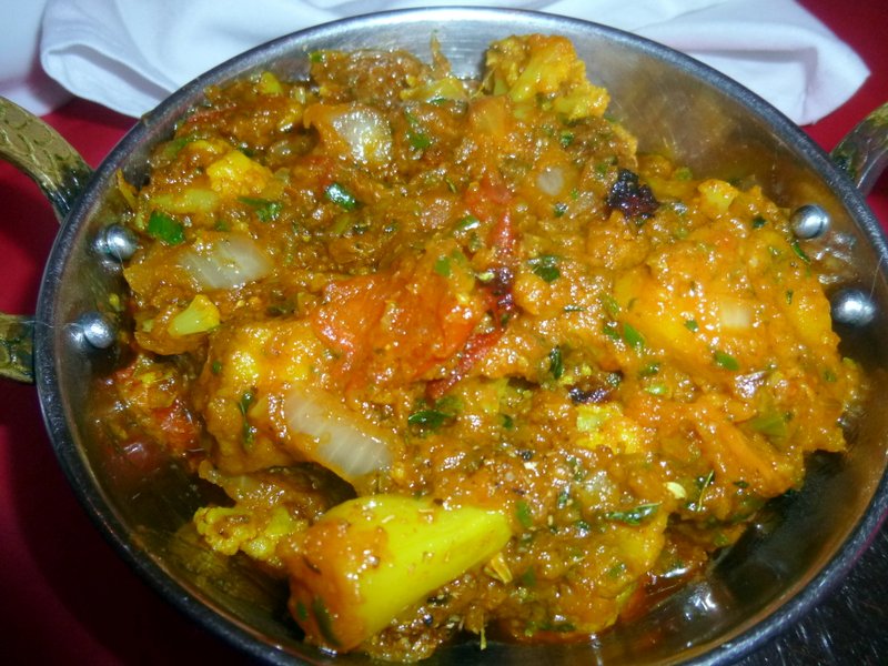Achari was very much in mind, the description looked fine, the Dreaded Capsicum not mentioned. Surely the Pickle would provide a Taste Variant? Being particularly ravenous, a Side Dish of Interesting Vegetables was required. At £4.00 for any of the listed Vegetable Curry Sides, the Potato Cauliflower had to be captured. Two Chapattis (80p) should be sufficient.
