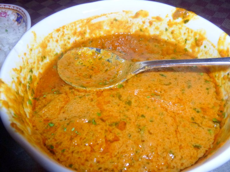 Once could have dismissed the entire meal at this point as being yet another disappointing Euro-Curry, however, things became decidedly positive. The Masala was Thin and Oily. Well Thinner than I would have hoped for but it did have Body. It was not Red, a bonus. Cream was evident, the word Makhani came to mind. Hector’s mouth was still on fire after the Hot Dip, but even so, a powerful sense of Citrus came on to the palate. This Masala was not Breaking Bad at all. Indeed, I realised I was thoroughly enjoying it.