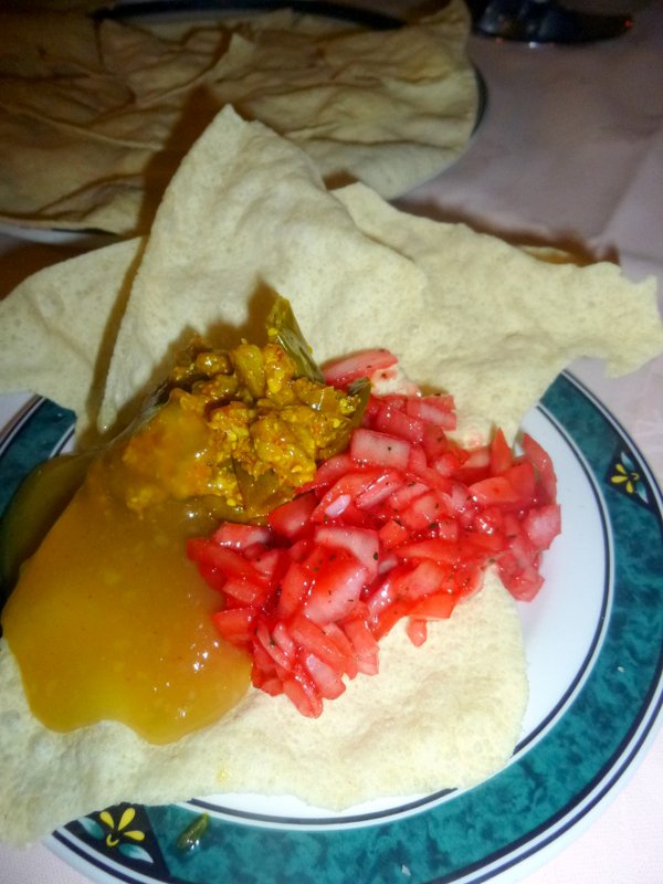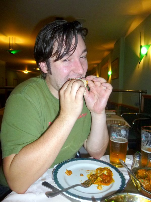 Jamie, a Regular at The Akash, has been sampling Lamb Curry of late but has yet to cast aside his love of the traditional Bland White Meat. The Akash Mazadar was his choice, a Dish featuring Chicken Prawns and Lamb. Halfway to paradise? Jamie and I agreed on two Chapattis (£0.75), we meant Each, but only two ever turned up. As it would turn out, we had enough food without overloading on Bread, or would we?