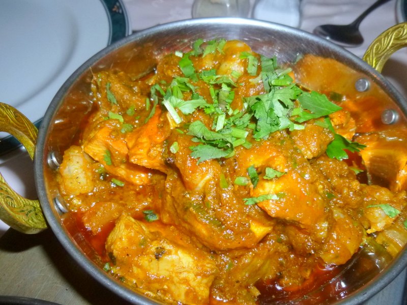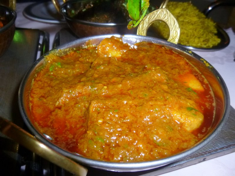 The Complementary Poppadoms, Spiced Onion and Mango Chutney were brought to the table. This is how it should be, how I loathe establishments which effectively add a Fiver to The Bill through sharp practice. The wait between courses was not noticeable, the Curry came soon after.