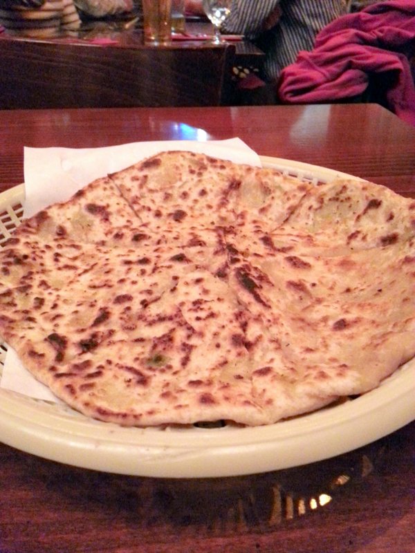 The other Waiter brought the Aloo Paratha. This was not the biggest Paratha ever set before The Hector. It looked Peely Wally, so thin I could not verify the presence of Potato within. There was a temptation to nibble, however, The Waiter returned to inform me they had no Mushrooms. Any Vegetable but Capsicum please. The Paratha now looked very lonely. Was I to sit and watch it wither? Fortunately The Waiter came and took it away.