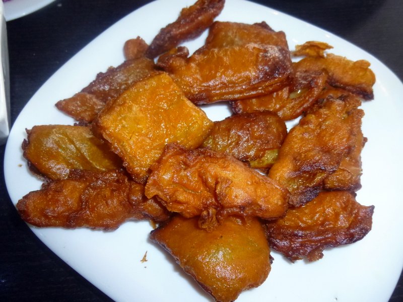 This was not we would eat. A Salad, and Chutneys were brought out to accompany the Complementary Poppadoms, and then even more Dips. Not content with this, Sadaqat served up the House Onion in Batter, not quite a Bhaji but worth a Nibble.