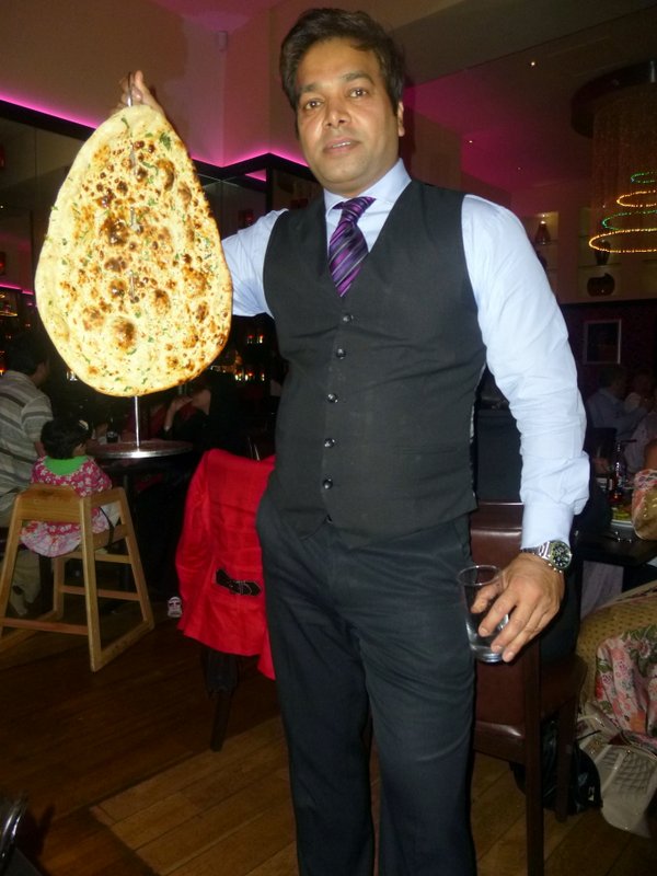 A two year old girl magically appeared at the tabletop beside us. She could barely reach the table but somehow did reach the bottom of the Naan to which she started helping herself. Our Waiter was over in a flash, her parents were mortified. How did she get off her high chair? Weans and High Chairs…