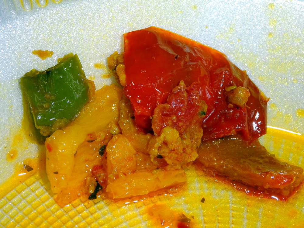 I started with the Keema which was decidedly lacking in Potatoes and Peas, Keema then, Chicken Keema. With Oil rather than a Masala this was as Dry as Keema should be. Sadly, I started to pull out pieces of Capsicum, Red, Yellow and Green. They had done their damage and had distorted what was a new Flavour Experience.