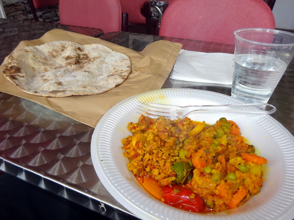 Signs on the wall had Aloo Keema Mutter with two Chapattis at £5.00 and Mixed Vegetable Curry with two Chapattis at £4.00. I like these prices. Mein Host came over to verify it was a Chapatti I desired, not a Naan.