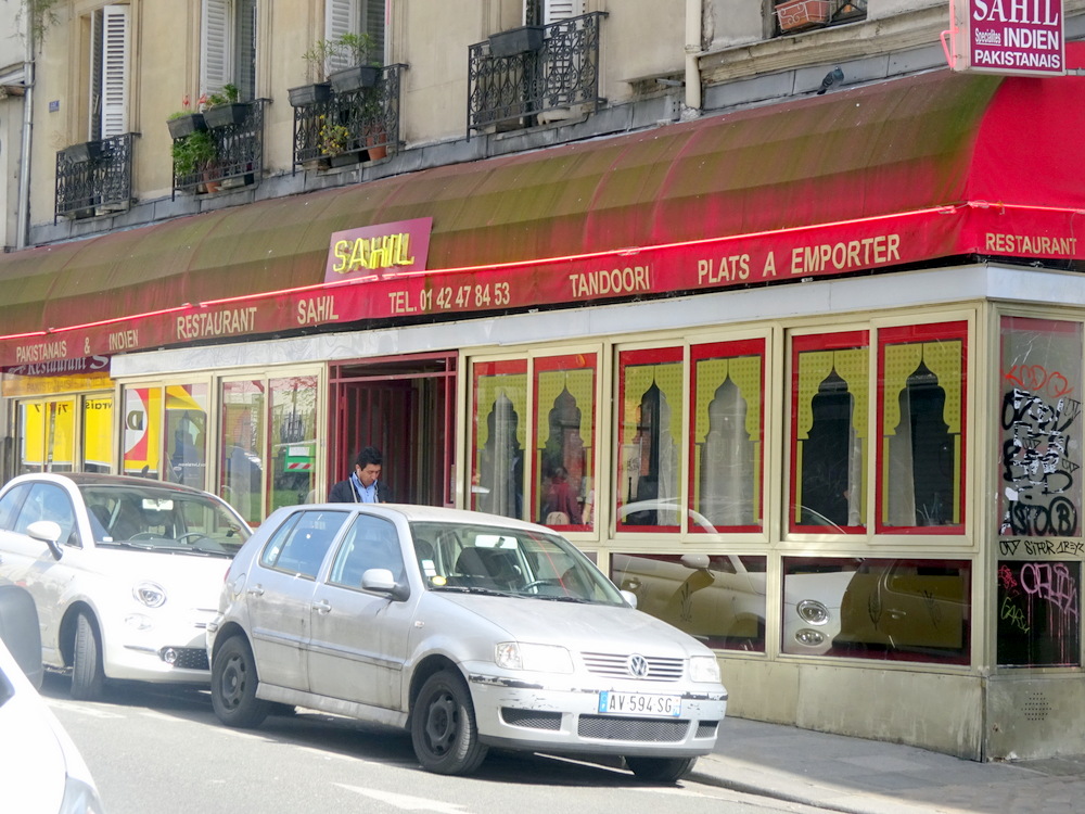 After indulging Marg with a coffee at a Cafe adjacent to the Arch, we walked back up Rue du Faubourg. Beyond Rue Jarry, I spotted the large venue that is Sahil (106 Rue du Faubourg Saint-Denis, 75010 Paris). I crossed over to investigate further. Agneau Karahi, but €50.00 a Kilo? Who would pay that?