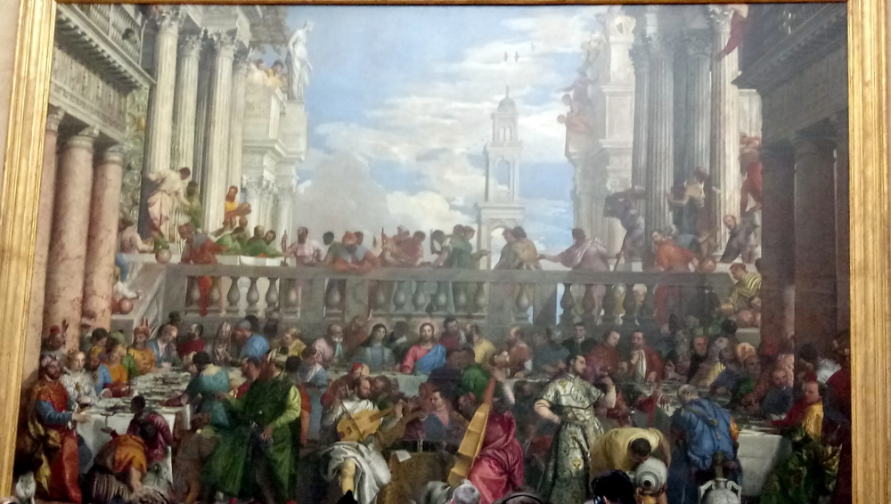 And so to Le Louvre on a rainy Paris Monday. La Joconde – Mona Lisa – may attract all the attention. On the opposite wall is a much grander canvas which I have renamed: