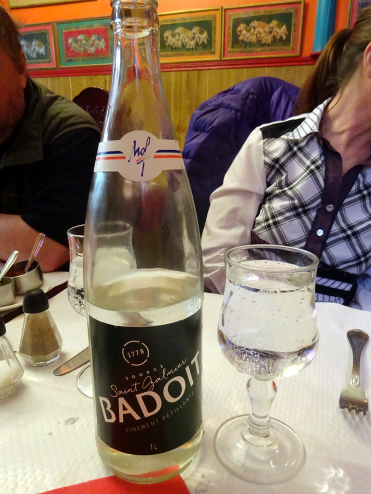 A litre Bottle of Badoit (€6.00) would be shared by Marg and Hector. Clive and Maggie’s Bottle of Still Water may have cost the same.