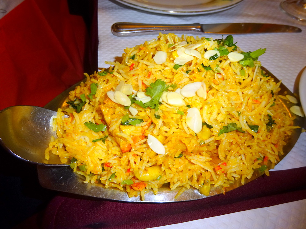 I asked the Waiter if Rice was inclusive, not here. Choice: Plain Rice @€3.00 or Riz Rajpouts Special @5.00. Given some of the outrageous prices I have paid for Bier on this trip, a couple of Euros more felt worth the investment.