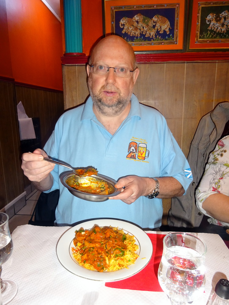 It’s a bit dry – was Maggie’s repeated comment. At least she could begin, the rest of us were lacking a key part of our Meal for quite a few minutes. Finally the Riz Rajpouts Special was placed on my left, adjacent to Maggie’s Biryani. The volume was comparable. When I was told that this was – for two – I had to wonder, especially when I knew that Marg would be claiming some. It was now just as well that Maggie had a Biryani, stretching this Quantity of Rice to four would have been difficult.