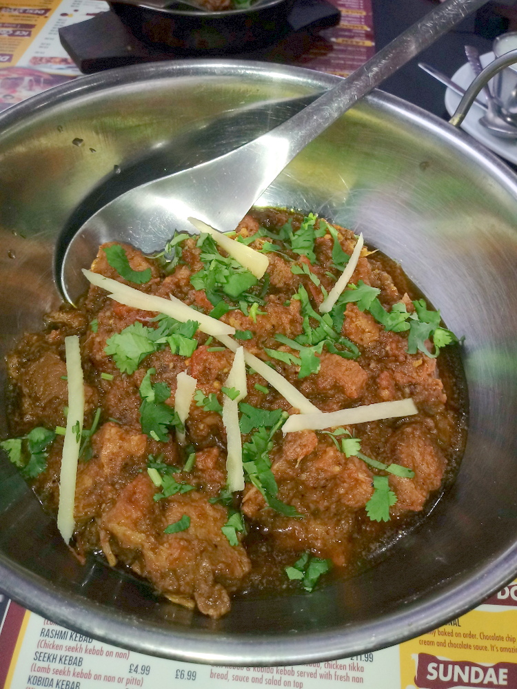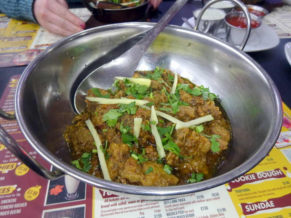 The Main Event was upon us. Two generous portions in their respective Karahi, then Hector’s Handi Gosht arrived in the large Karahi. Behold the half kilo! (£13.99)