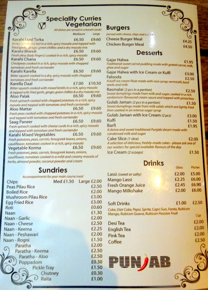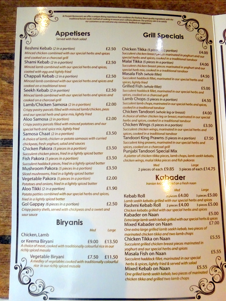The Menu shows – Punjab Restaurant – on the cover.