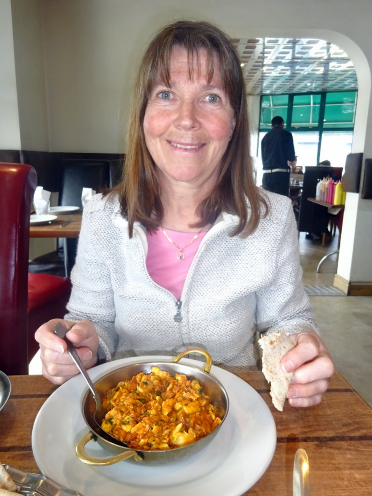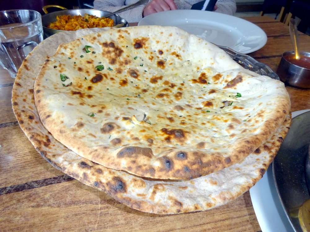 All Mains are available in two sizes, Regular and Large. What a magnificent way to serve Curry. Marg ordered Karahi Fish – Regular (£8.30), Hector went – Large (£12.85). At Punjab, one pays for all Bread. Marg stuck to her usual Roti (£0.60). I asked for a Chilli and Coriander Naan which was not on the menu, how long before it is commonplace? The Waiter was unsure if this was doable, he would check. My back up was an Aloo Paratha (£2.50). All Naans were in the £1.50 to £2.50 range, Cheese Naan being top of the scale.