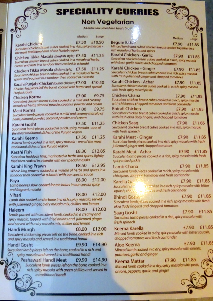 If Sarina’s opened on a Sunday, Marg and I would have been there today for Handi Gosht, not to be. I couldn’t possibly come back from South Yorks and not have a Bradford Curry. I even contemplated dining at one Restaurant and buying a Takeaway from another, I’ve done that before. When I visited Sultan in February on a tip off from a taxi driver, the other place he mentioned was – Punjab. What was Punjab Sweet Centre & Grill House (122-126 Listerhills Road, Bradford, BD7 1JR) may have shortened its moniker. Today was a good day to check, they open at Noon on a Sunday.