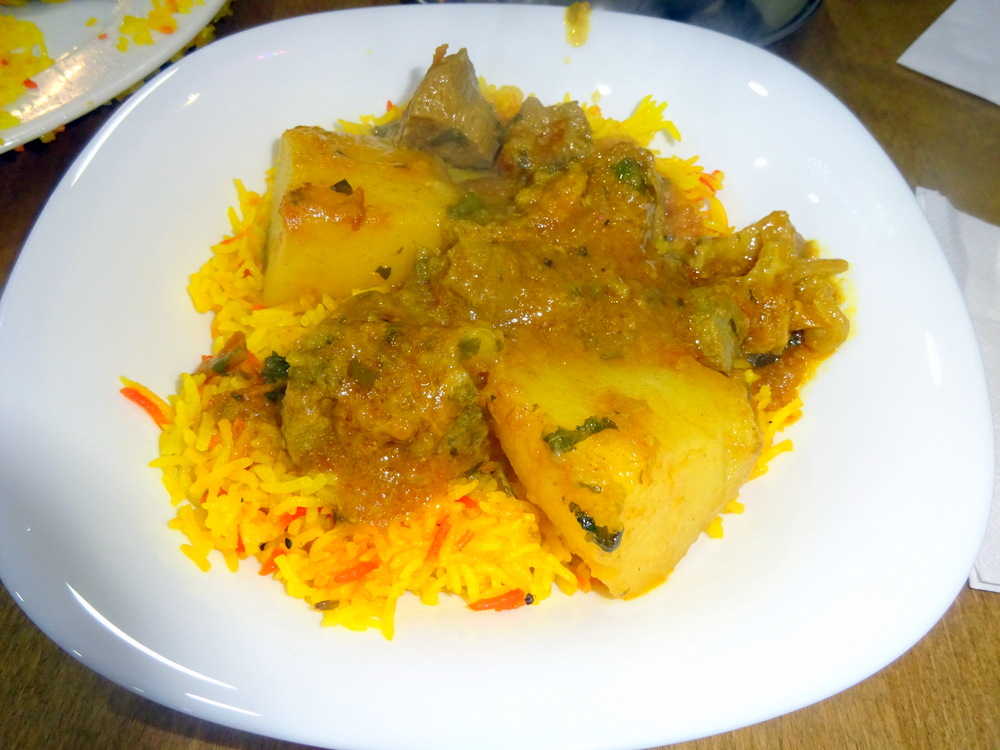 A Young Chap talked me through the Dishes on offer. Aloo Gosht on-the-bone was the only Meat option, Chicken being dismissed. One day I might remember to ask for the Menu. Two Portions of Aloo Gosht, one portion of Rice and one Chapatti were ordered.