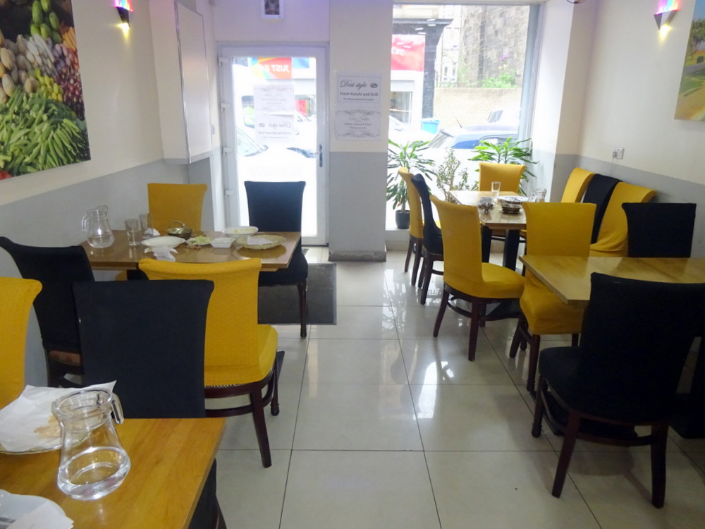 Entering just after 14.00 half of the tables were occupied, within minutes all were. The counter has moved since I was last here, now providing access to the Takeaway Grill. Presumably, the actual cooking takes place in the new kitchen in the Desi Cafe and the reheating and Bread is done in the Desi – Curry Palace. Access to the Facilities is also easier.