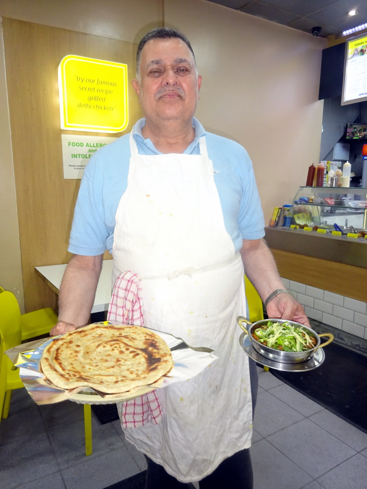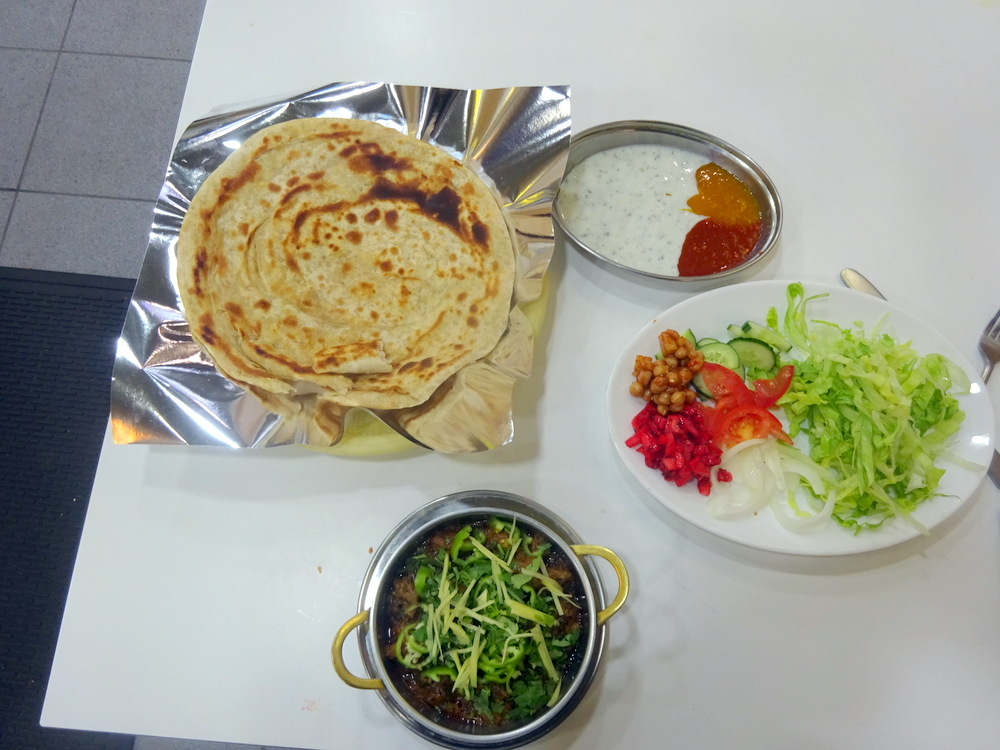 Finally his Curry and Paratha were produced and Mian offered Howard Sauce and Salad.
