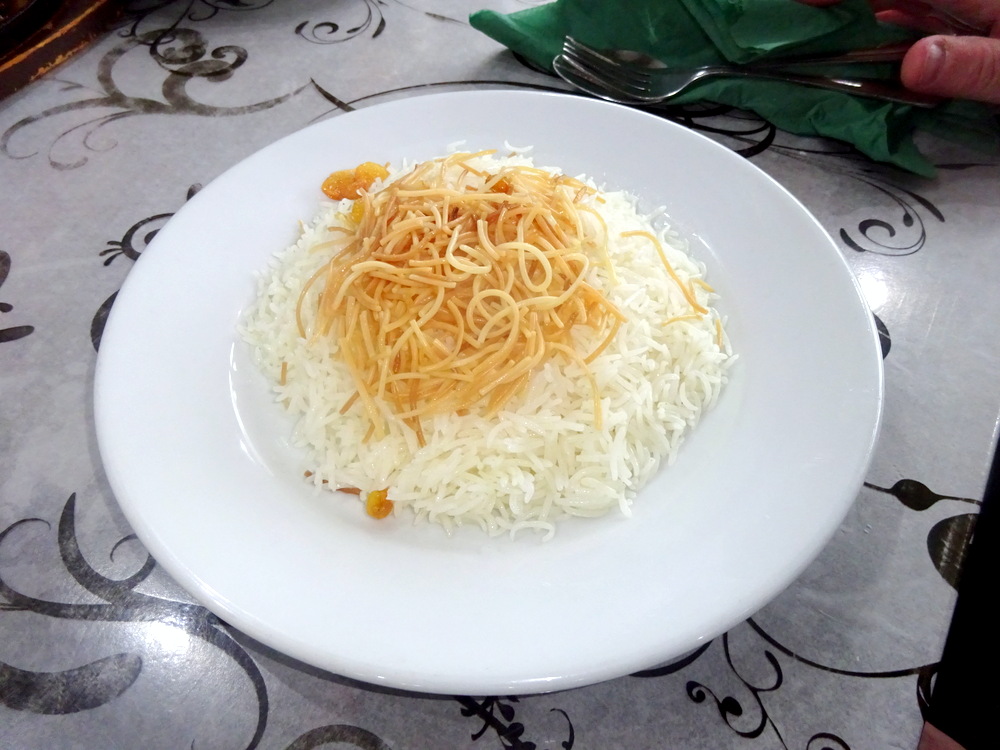 And so it was time to order. Yvonne asked for Lamb Tashreeb, however, Mein Host steered her towards the Lamb Qozy. He explained that both dishes have essentially the same ingredients, though the Tashreeb is – Arab-style – with everything mixed in. I was not put off and stuck to my plan, though did take a moment to ask if the Peppers could be withheld, apparently not. Still, it was not Curry and it is really only here where I have an issue with Capsicum.