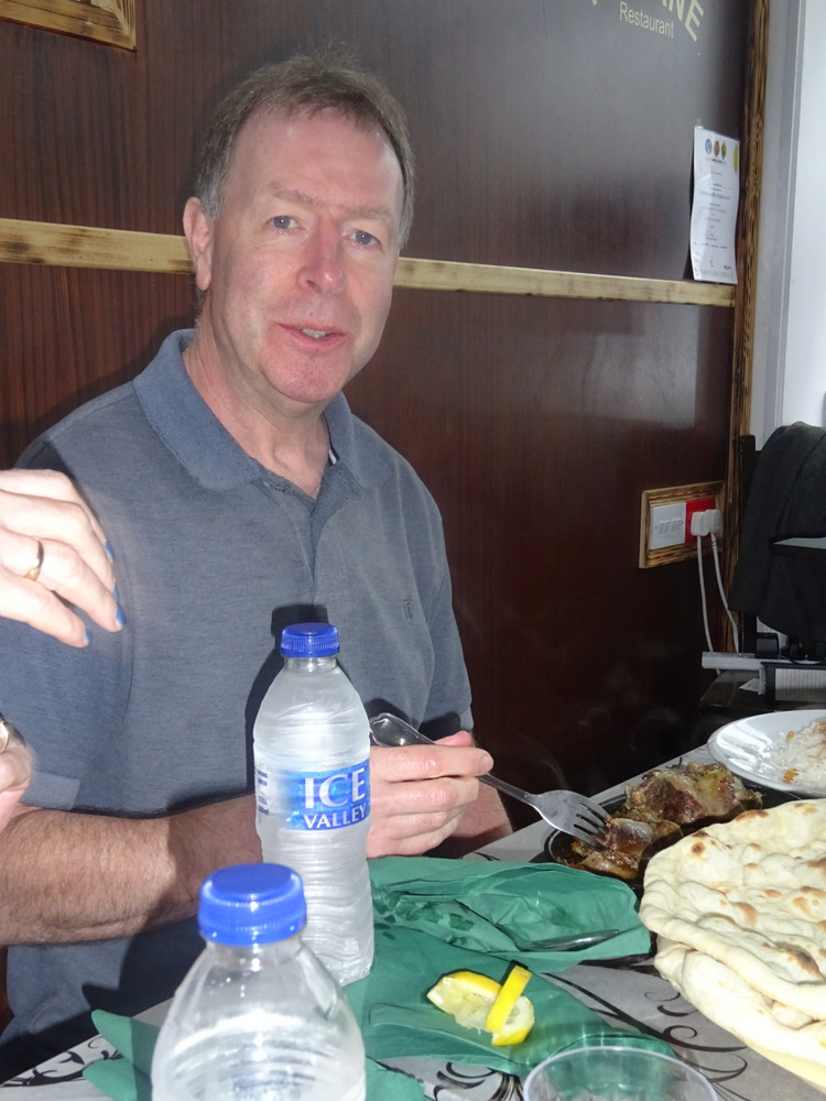 Entering Kobane seconds before Noon, Howard was already in situ. He had taken the train from Victoria at exactly the same time as we had left Picadilly. His train overtook ours at Stalybridge. Howard had a few minutes to study the Menu. Howard suggested that he and Mags share a Large Lamb Qozy (£8.00). I knew I would be having the alternate Dish – Lamb Tashreeb (£6.00). Craig and Yvonne were inclined to follow this lead.
