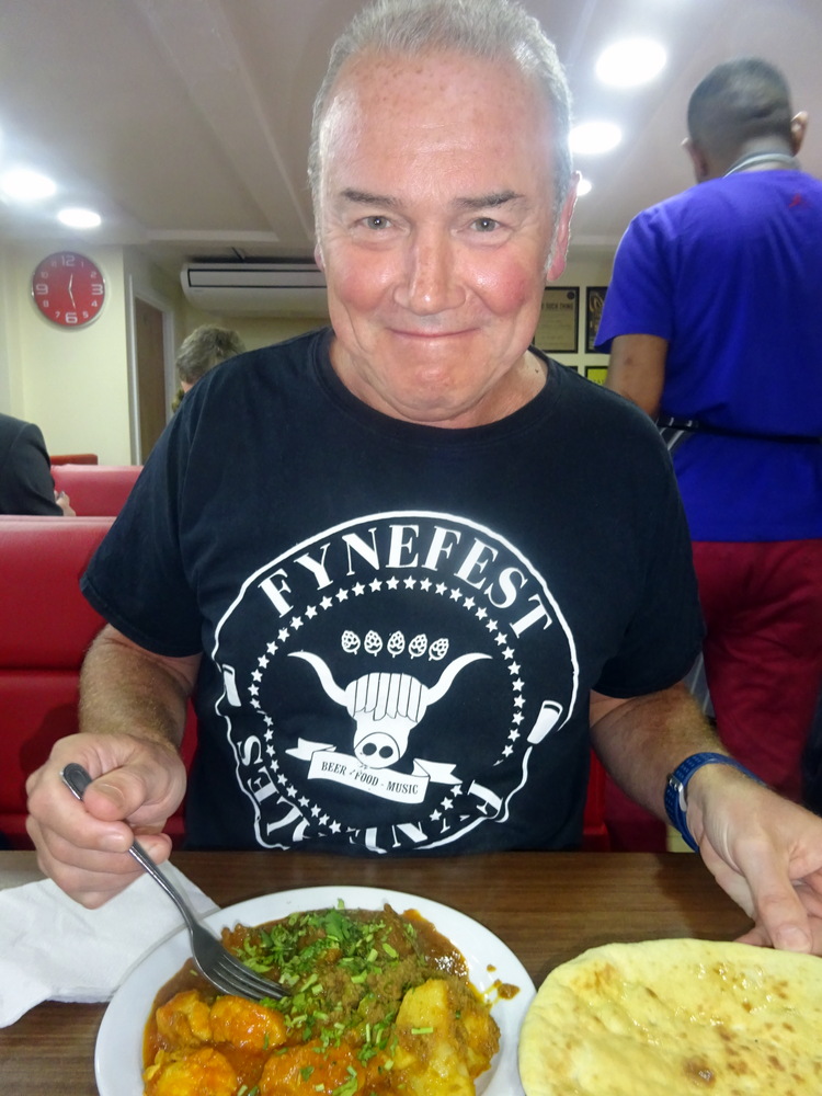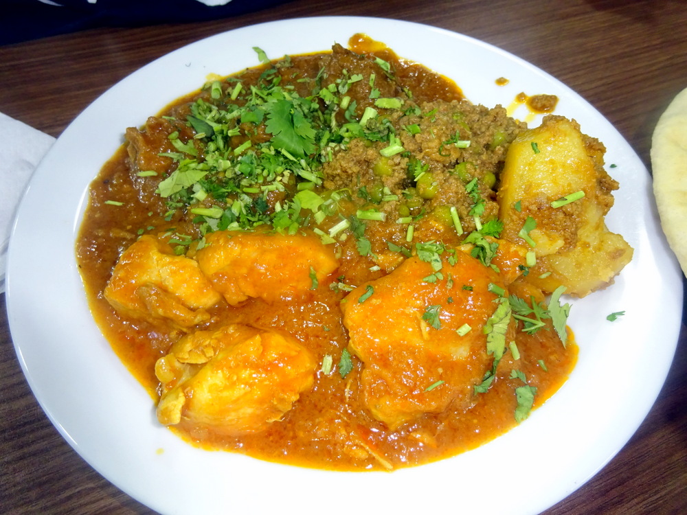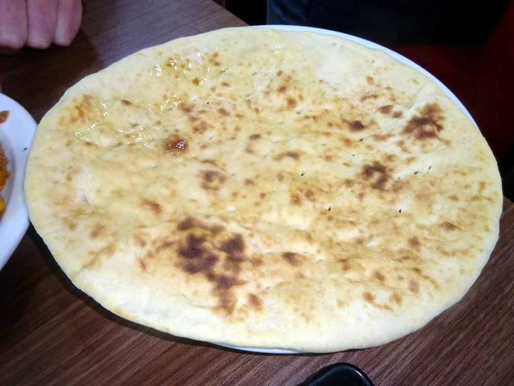 Steve joined the queue then sat down, somehow we had much more room than when it was just Mags and I. He had ordered Bread which is freshly made to order. In a few minutes, his Chicken Balti, Keema Peas and Aloo Gobi were presented with the Naan.